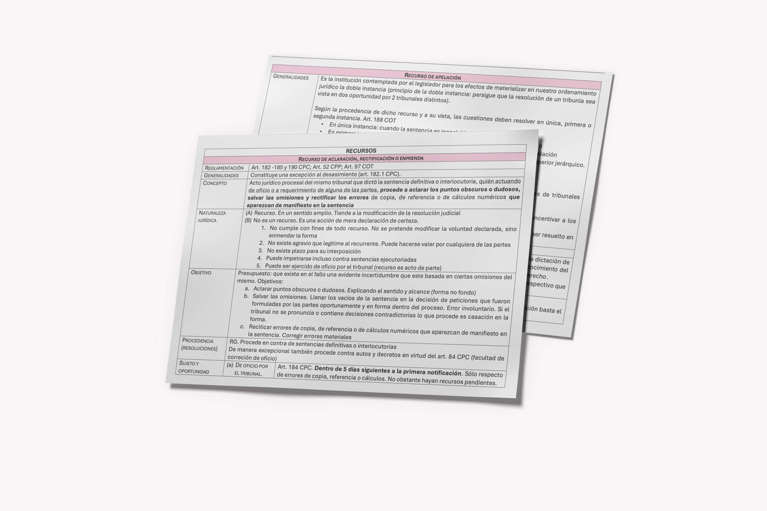 Este resumen de Derecho Procesal sobre recursos judiciales ofrece una exposición clara, completa y sistemática de cada uno de los medios de impugnación del proceso civil: reposición, apelación, casación, queja, aclaración, rectificación y revisión. Incluye requisitos, plazos, efectos, procedimientos y jurisprudencia relevante, siendo una herramienta esencial para preparar cédulas, interrogaciones o el examen de grado con una comprensión sólida y ordenada del régimen recursivo en el proceso chileno.
